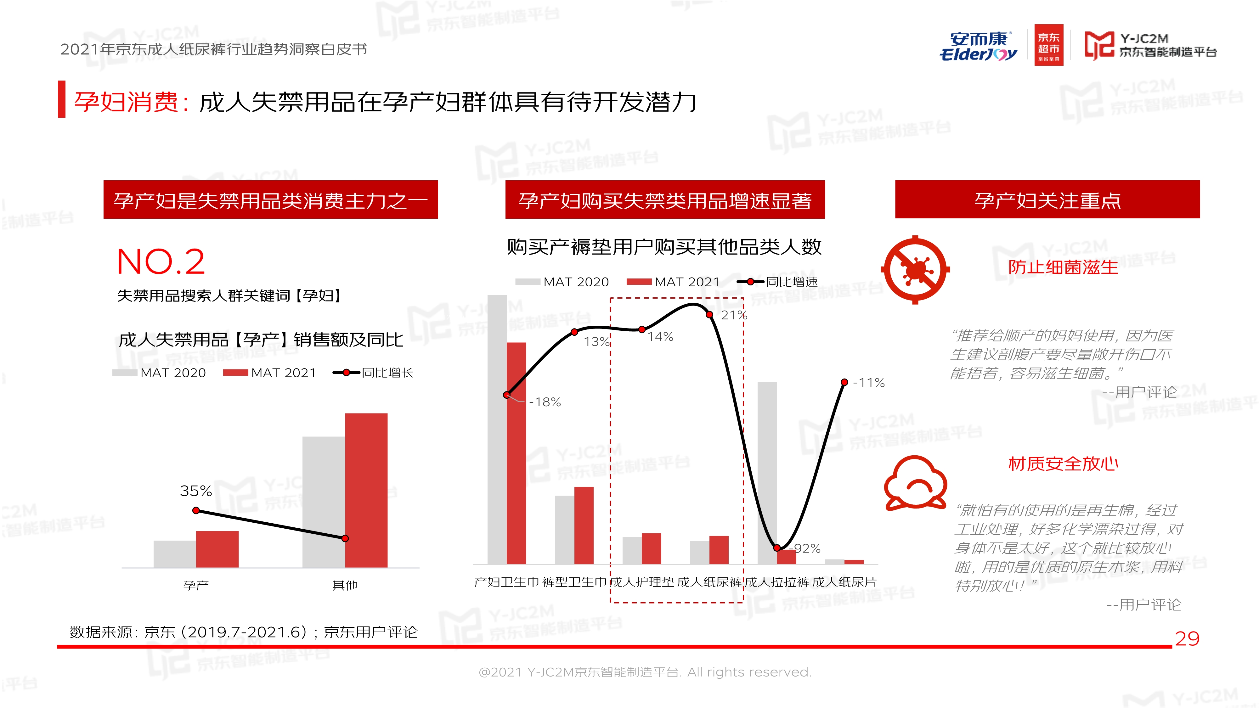 事件: 2023-01-07近日,彩神vll购彩旗下成人纸尿裤品牌安而康联合京东智能制造平台共同发布《2021年京东成人纸尿裤行业趋势洞察白皮书》(下称《白皮书》),从行业概况、品牌格局、用户洞察、趋势展望四个维度,结合销量数据与消费者,深入剖析了随着我国步入老龄化社会以及消费观念不断升级,国内纸尿裤市场的全新变化与发展趋势。